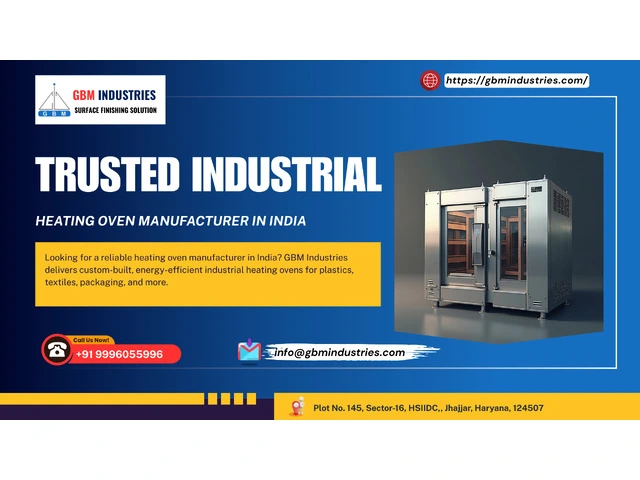 GBM Industries, based in Haryana, India, is a leading ISO 9001:2015-certified manufacturer offering a wide selection of industrial ovens—such as batch, conveyor, drying, curing, and heating ovens—designed for precise heat control, energy efficiency, and industrial durability. Their products support applications across automotive, aerospace, electronics, and general manufacturing industries. With a commitment to customization, innovation, and long-term performance, GBM delivers trusted oven solutions for industry professionals.